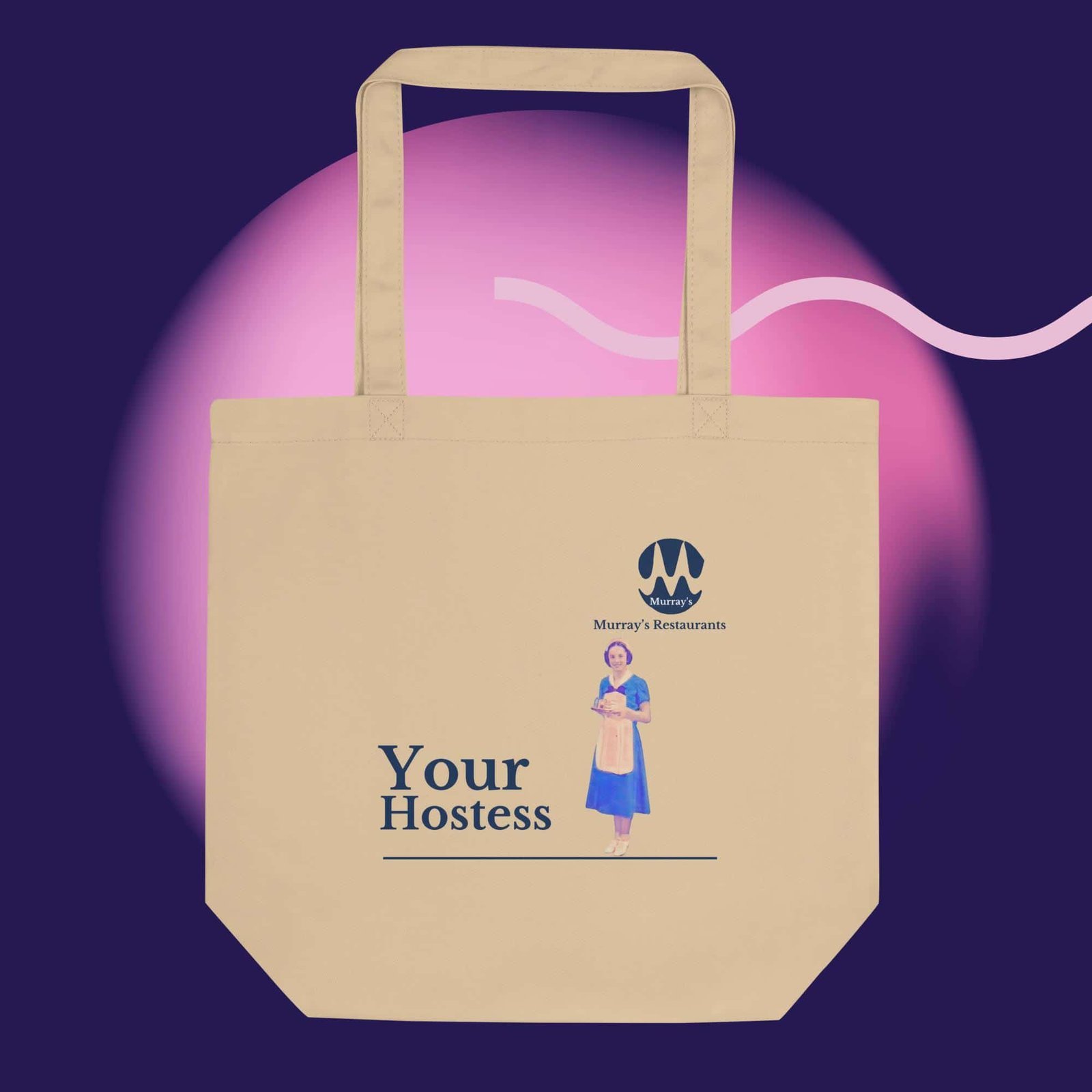 Timeless Design: Featuring the iconic Miss Murray image, this tote brings a touch of vintage charm to your everyday routine. It’s a perfect way to show your appreciation for the classic Canadian dining experience that Murray’s Restaurants embodied.